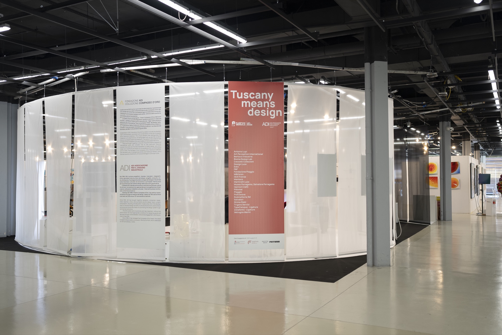 All’interno della mostra, la presenza di ADI Toscana prende forma in uno spazio espositivo che racconta e valorizza le eccellenze del territorio toscano. La Toscana, infatti, custodisce una filiera produttiva unica: un tessuto industriale e artigianale di altissimo livello, storicamente mappato da ADI e apprezzato nel mondo, capace di essere al tempo stesso motore economico e patrimonio culturale. Questo allestimento intende svelare la complessità e la ricchezza di tale realtà, andando oltre la consueta immagine turistico-culturale della regione, per mettere in scena una tradizione fatta di innovazione, qualità e design.