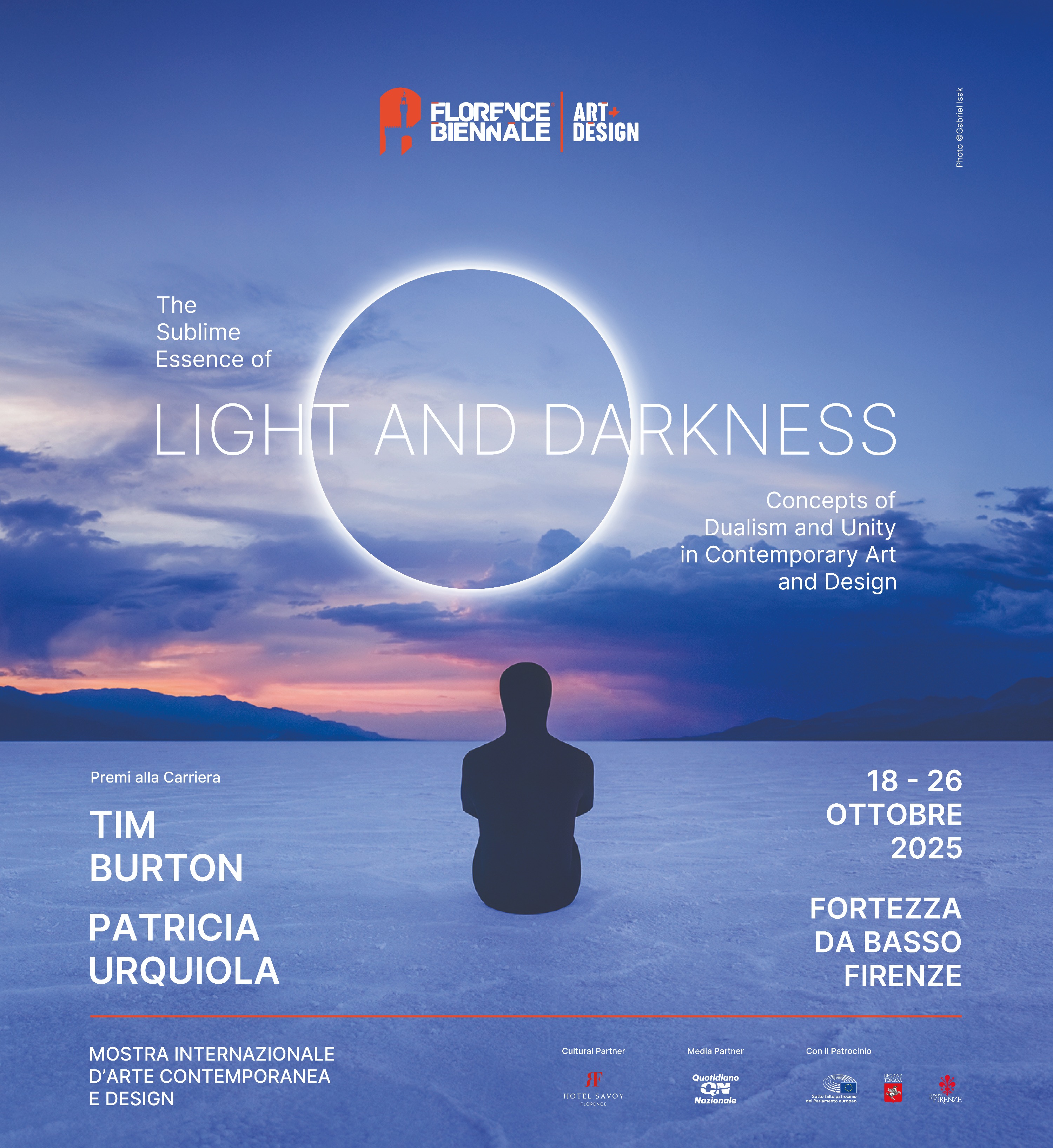 The theme of the XV Florence Biennale is dedicated to the primordial, eternal union between light and darkness. Across different cultures and eras, the duality permeates every aspect of life: male and female, day and night, order and disorder, good and evil.